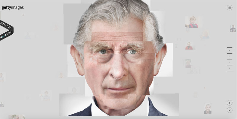 On this site I really like that when you scroll a bunch of scattered images move towards each other until they've formed well known faces. It is a creative concept that goes quite well with the site's catch phrase, "millions of images. endless possibilities."